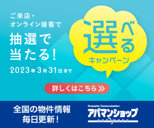 ご来店・オンライン接客で抽選で当たる!2023年3月31日まで 選べるキャンペーン アパマンショップのバナー