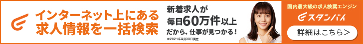 インターネット上にある求人情報を一括検索 新着求人が毎日60万件以上だから、仕事が見つかる!スタンバイのバナー