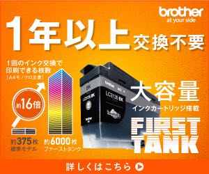 brother 1年以上交換不要 大容量インクカートリッジ搭載FIRSTTANKのバナー