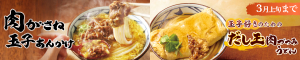 肉がさね玉子あんかけ 玉子好きのためのだし玉肉づつみうどん 3月上旬までのバナー