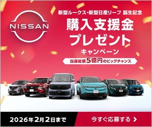 NISSAN 新型ルークス・新型日産リーフ 誕生記念 購入支援金プレゼントキャンペーンのバナー