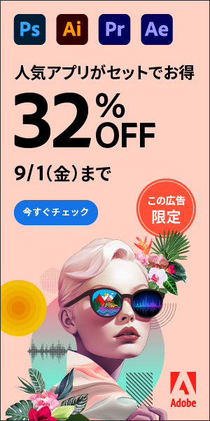Ps Ai Pr Ae 人気アプリがセットでお得 32%OFF 9/1(金)まで この広告限定 Adobeのバナー