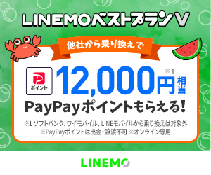 LINEMOベストプランV 他社から乗り換えで12,000円相当PayPayポイントもらえる!のバナー