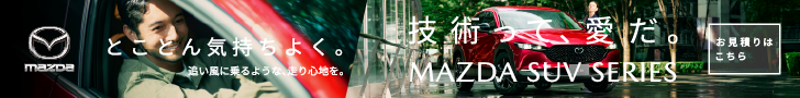 とことん気持ちよく。追い風に乗るような、走り心地を。技術って、愛だ。MAZDA SUV SERIESのバナー