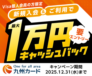 Visa個人会員の方限定 新規入会&ご利用で最大1万円キャッシュバック 九州カードのバナー