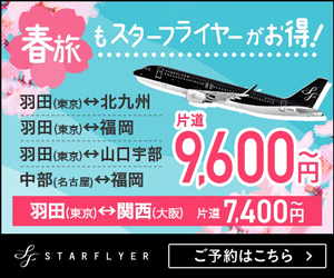 春旅もスターフライヤーがお得!片道9,600円〜STARFLYERのバナー