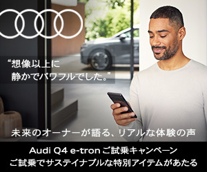 “想像以上に静かでパワフルでした。” 未来のオーナーが語る、リアルな体験の声 Audi Q4 e-tron ご試乗キャンペーンのバナー