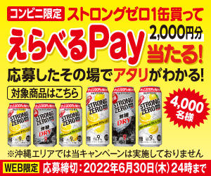 コンビニ限定ストロングゼロ1缶買ってえらべるPay2,000円分当たる!応募したその場でアタリがわかる!のバナー