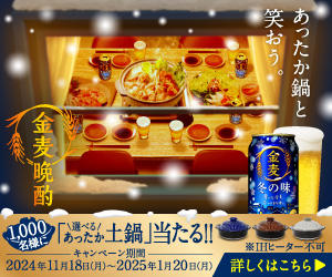 あったか鍋と笑おう。金麦晩酌 1,000名様に「選べるあったか土鍋」当たる!!のバナー