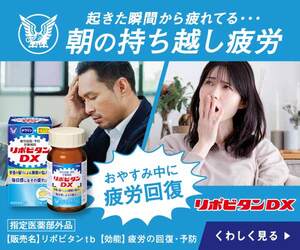 起きた瞬間から疲れてる…朝の持ち越し疲労 おやすみ中に疲労回復 リポビタンDXのバナー