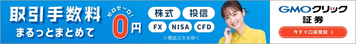 取引手数料まるっとまとめて0円 株式 投信 FX NISA CFD GMOクリック証券のバナー