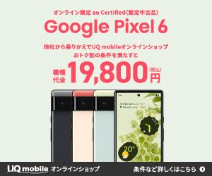 Google Pixel 6 他社から乗りかえでUQmobileオンラインショップおトク割の条件を満たすと機種代金19,800円のバナー