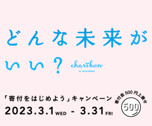 どんな未来がいい?charibon「寄付をはじめよう」キャンペーン 2023.3.1WED-3.31FRIのバナー