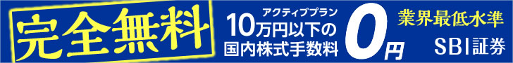 完全無料 アクティブプラン10万円以下の国内株式手数料0円 業界最低水準SBI証券のバナー